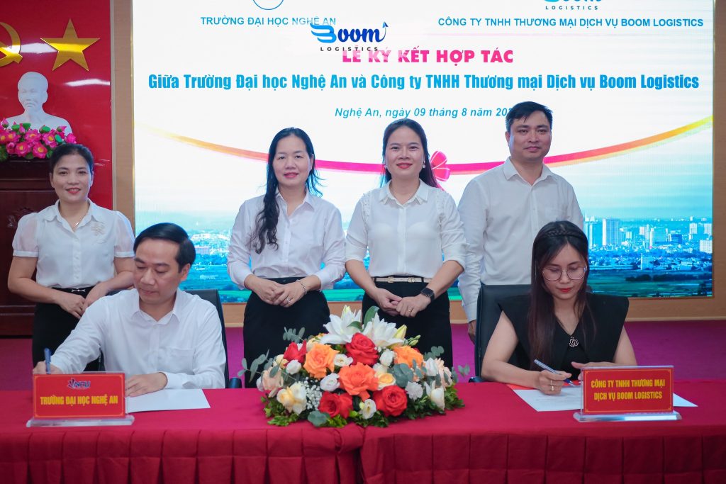 Lễ ký kết hợp tác giữa Trường Đại học Nghệ An và Công ty TNHH Thương mại Dịch vụ Boom Logistics[/caption]